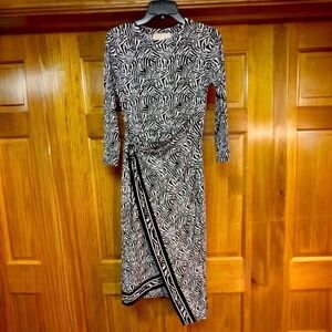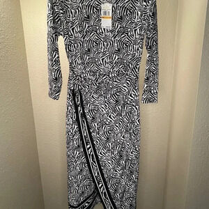 MICHAEL Michael Kors Zebra Asymmetrical Border Midi Dress (Black/White) SM & SP