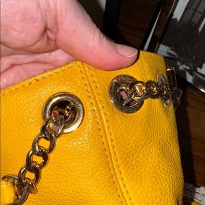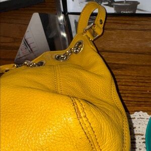 Elevate your look with this vibrant yellow Pebbled Leather Michael Michael Kors handbag/shoulder bag. Features signature MK charm and chain details.
