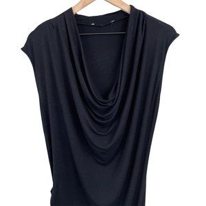 MICHAEL Michael Kors black cowl neck asymmetric ruched side midi dress medium