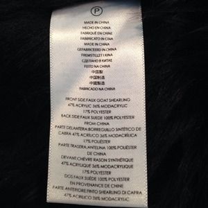 Outer shell - faux suede; inner lining - faux goat fur. Petite S, or XS reg.