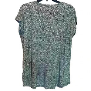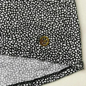 MICHAEL-Michael Kors Tunic knit top. Rounded neck with short cap sleeve. Black and white knit. Michael Kors gold button detail at hem bottom. Front is slightly shorter than the back. Worn once. No stains. The last photo is a shadow from the camera. This is a close up to show pattern/print. 55% Cotton 45% Modal