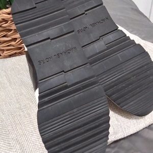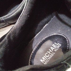 Only worn twice;(small pic#10 in new condition) these leather upper rubber outsole MICHAEL Michael Kors Allie Trainer can go anywhere with you-wear anything; jeans, skinny pants, leggings, jeggins, shorts, skirts and even a dress!!! Why? bc they are awesome!!! In black and white, drop in any pop color!!! With lace-up construction; so well-taken-care-of the 'MK' embellished tips are still in tact on the laces- check out all the signature logo hardware detail. This size 6M/36M includes padded tongue and collar, textile lining and footbed and rubber outsole. Yes, you'll catch 'em looking!!!