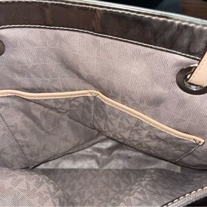 This sophisticated gun metal gray tote from MICHAEL Michael Kors combines elegance with practicality. Its structured design ensures it maintains its shape, making it ideal for everyday use. The bag's spacious interior offers ample room for all your essentials, while its classic color adds a touch of timeless style to any outfit.