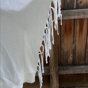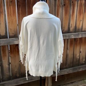 MICHAEL Michael Kors sweater fringe tassels cream solid Sz Med FIRM on PRICE