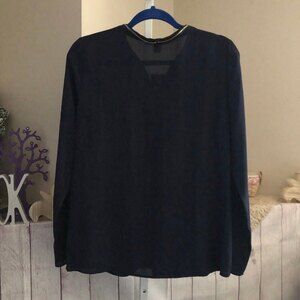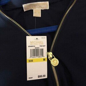 MICHAEL Michael Kors sz M True Navy Sheer Zip Blouse NWT