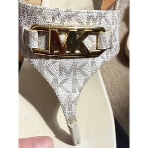 Step out in style with these gorgeous MICHAEL Michael Kors wedges! These size 7 wedges feature a chic thong style with a comfortable back strap and a stylish gold MK buckle.