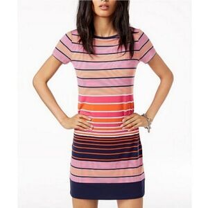 MICHAEL Michael Kors Abbey Striped Short Sleeve Shift Crew Dress