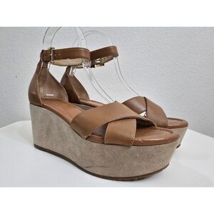 MICHAEL Michael Kors Women's Desiree Wedge Sandals Brown Leather Upper Size 6.5