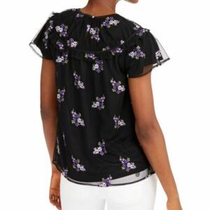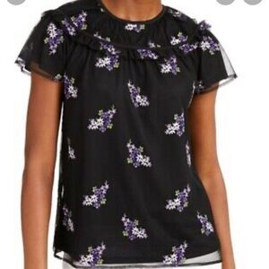 MICHAEL Michael Kors Ruffle Embroidered Mesh Top