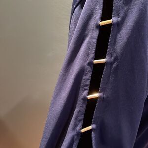 MICHAEL Michael Kors navy stretch open gold bar ladder upper sleeve midi. Small