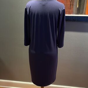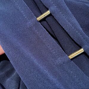 MICHAEL Michael Kors navy stretch open gold logo bar ladder upper sleeve midi. No fabric content tag - silky & very stretchy. Small. Excellent condition. Nonsmoking home.