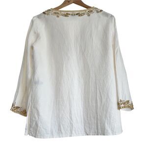 MICHAEL Michael Kors Boho White Linen Tunic Gold Seed Beads Small