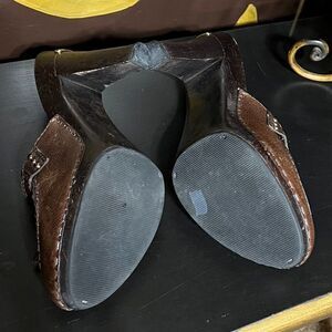 Fabulous mules by Michael Kors. Made of all leather with wooden heel and soles. Has a leather tassel and gold embellishing and a 4.5" heel with a 1" platform. Still in great condition!