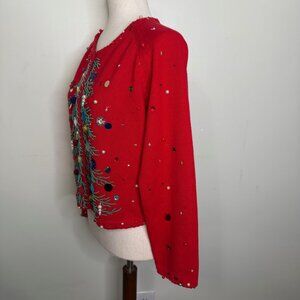 MICHAEL SIMON Women's size MEDIUM Embellished Christmas Tree Sweater RED 2000