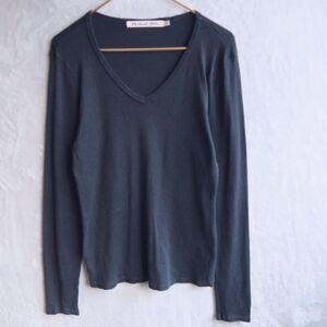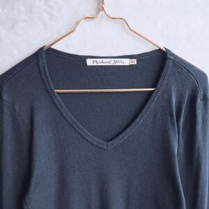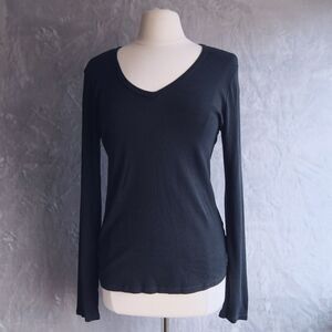 MICHAEL STARS Black V Neck Knit Shirt Size M/L Cotton Blend Fitted Grunge
