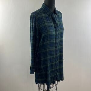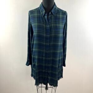 MICHAEL STARS Blue Plaid Button-Down Shirt Tunic Raw Edge Hem Long Sleeves Sz S