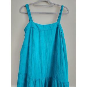 MICHAEL STARS Evie Midi Blue Dress, Contemporary Essentials For Everyday Wear. Evie Midi Dress In Rustique With Gauze Fabric, Square Neckline And Button-Adjustable Shoulder Straps