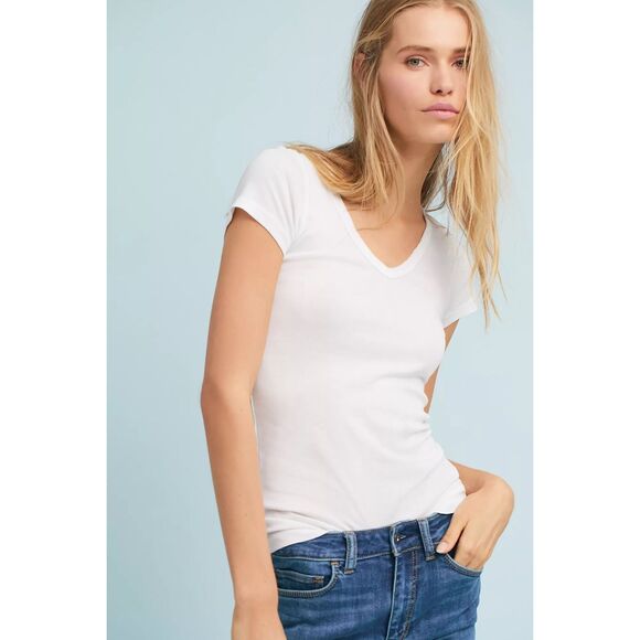 MICHAEL STARS FOR ANTHROPOLOGIE Women’s White Sparkle Short Sleeve Top Size Medi