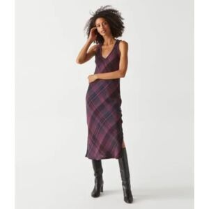 MICHAEL STARS Libbie Plaid Midi Dress In Plum | Size M