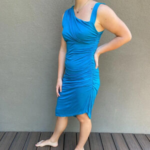 MICHAEL STARS NWT Shoulder Detail Ruched Stretch Knit Midi Dress - One Size