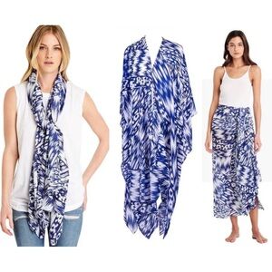 MICHAEL STARS Ruana Scarf Sarong Swim Cover-up Brushed Batik Blue White NWT