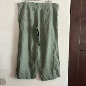 MICHAEL STARS | Sage Green Linen Wide Leg Ankle Length Pants | Large