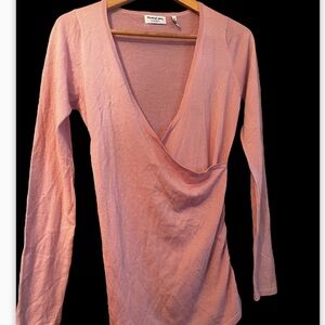 MICHAEL STARS Vivian Surplice 100% Cashmere Sweater In Pink One Size Women