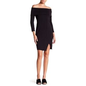 MICHAEL STARS off the shoulder fitted black bodycon party dress LBD Size XS NEW