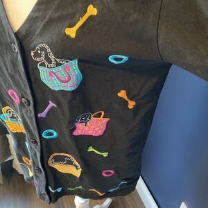 Michael Simon Lite Vintage Embroidered Dog Patch Button Up Cardigan