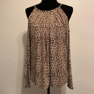 MICHAEL by MICHAEL KORS NWOT Cheetah Print Cold Shoulder Long Sleeve Blouse