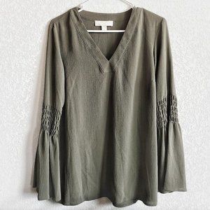 MICHAEL by Michael Kors Long Sleeve Green Bohemian Top with Bell Sleeves