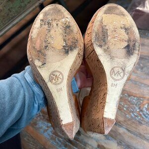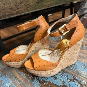 MICHAEL by Michael Kors Ostrich 5” Cork Wedges, SZ 8M