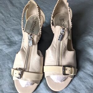 MICHAEL by Michael Kors Wedge Ivory Leather Sandal with Buckle and Zip Front 7