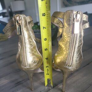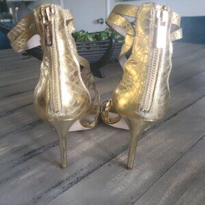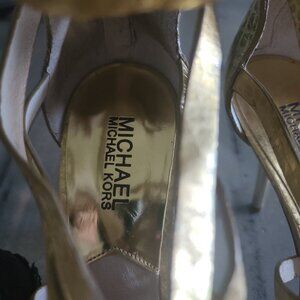 MICHAEL by Michael Kors Women's Size 8 Gold 3 Inch Stiletto Sandals Open Toe Ankle Support
