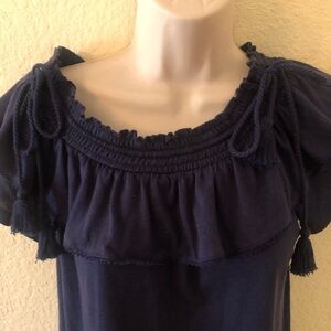 Michael by Michael Kors blue top, XS, two tassel ornaments on each shoulder, Off the shoulder.