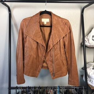 This jacket is so gorgeous and unique. 😍 deep caramel/cognac color. Has sort of a retro 70s vibe.