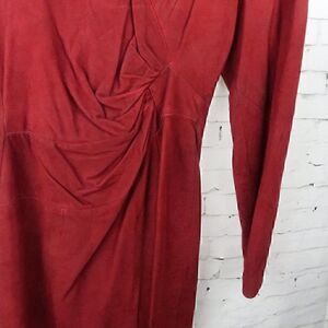 MICHAEL HOBAN NORTH BEACH LEATHER VINTAGE RED SUEDE LONG SLEEVE V NECK DRESS