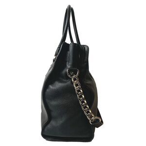 MICHAEL KORS Large Shoulder Bag Black Leather AP-1105 Gold Tone Hardware MK Lock Accessory Accent