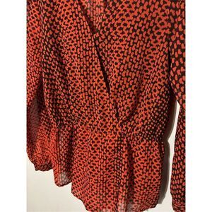 MICHAEL KORS NEW $89.50 SIZE S CHOCO MANDARIN KOBE PRINT PEPLUM BLOUSE TOP