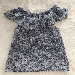 MICHAEL KORS Off The Shoulder Top Sleeveless Ruffle Silk Cotton Gray Small