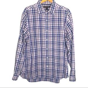 MICHAEL KORS Shirt, Button Front, Gray/White/Pink/Purple Stripes L