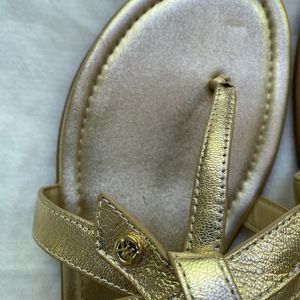 MICHAEL KORS Women Metallic Gold Bow Sandals - NEW NWOB