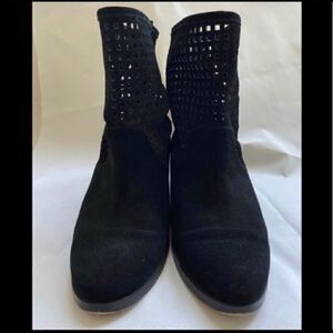 The Graham Ankle boot is a luxuriously chic style you won't want miss! Suede upper Easy pull-on wear Almond-toe bootie Perforated shaft with intricate square cutouts Synthetic lining Synthetic sole Imported Approx. Measurements: Heel Height: 1 in Circumference: 11 1/2 in Shaft: 6 1/2 in