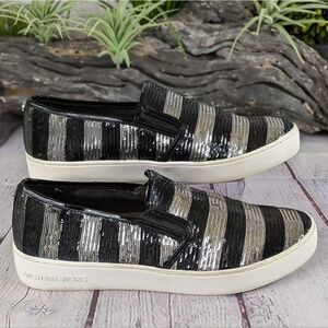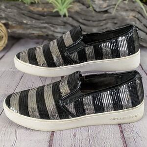 MICHAEL KORS Keaton Striped Sequin Slip-On, Black/Silvertone