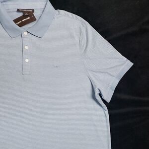 MICHAEL KORS LIGHT BLUE PINSTRIPE POLO - NEW