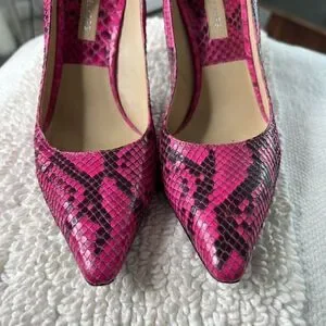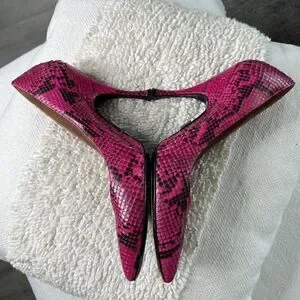 "Obsessed with these stunning Michael Kors python pumps! The fuchsia color is a showstopper. Genuine snake, stiletto heels, and made in Italy. Perfect size 38 IT. #FashionGoals #MichaelKors #PythonPumps"