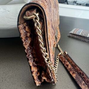 MICHAEL KORS Snake Leather Print Brown Gold Color Crossbody Bag Mini