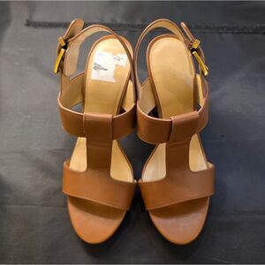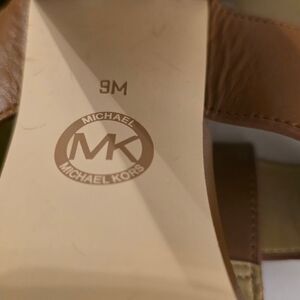 MICHAEL MICHAEL KORS BECKER LEATHER PLATFORM SANDAL SIZE 9M COLOR TAN Berkley block-heel by MICHAEL Hit your stride with the Becker a sandal that blends practicality and a luxe feel. It’s made from supple leather with thick straps to complement the soaring platform and block heel. Reach for this pair to add a polished finish to your look. Michael Kors will bring definition to any look. This supple leather sandal features Block heel 1"Open toe Front closure Upper leather lining manmade sole rubber Step out in style with these elegant tan block heel sandals. Perfect for any occasion, these shoes offer both comfort and sophistication.Sandal Leather 100% leather Lining polyurethane blend Sole rubber Open toe Buckle fastening Heel height 4"Platform height 0.75" Heel type stacked THIS ITEMS IS BRAND NEW WITH TAG NO BOX CHECK THE PICTURES