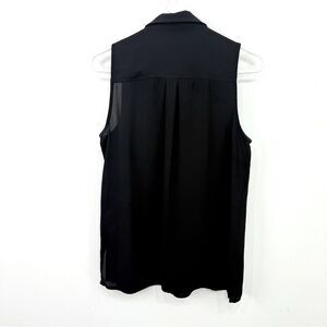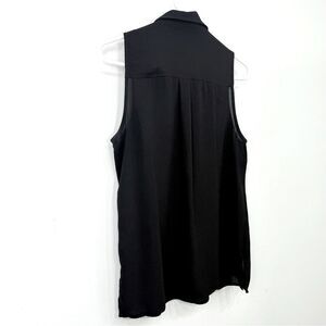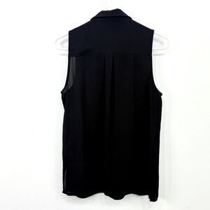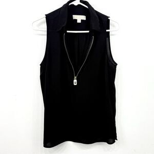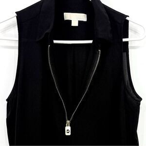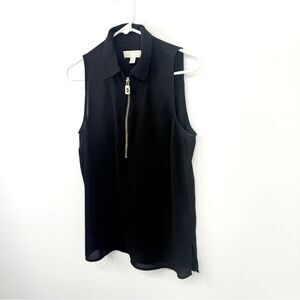MICHAEL Michael Kors Black Semi Sheer Collared Gold Half Zip Sleeveless Blouse