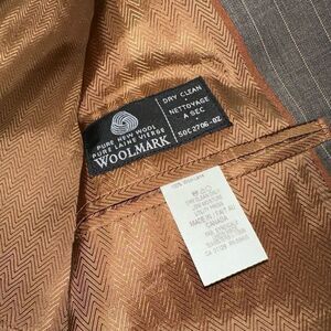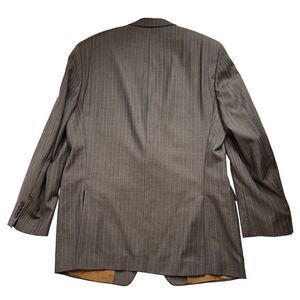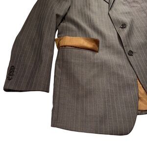 Item: MICHAEL Michael Kors Mens Gray Tan Wool Pinstriped Blazer 40R Preppy Modern